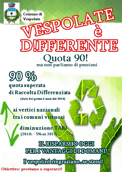 raggiunta quota 90% di raccolta differenziata rifiuti