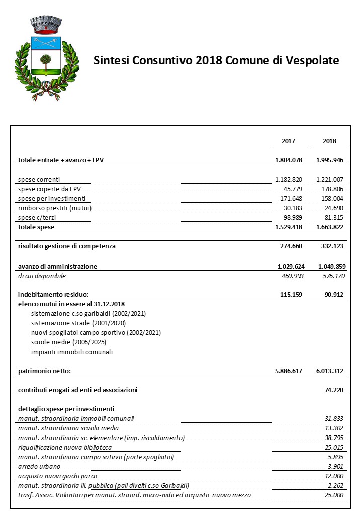 Nella seduta di Giunta n.15 del 18.04.2019 si sono approvati i numeri relativi alla gestione economico finanziaria 2018.